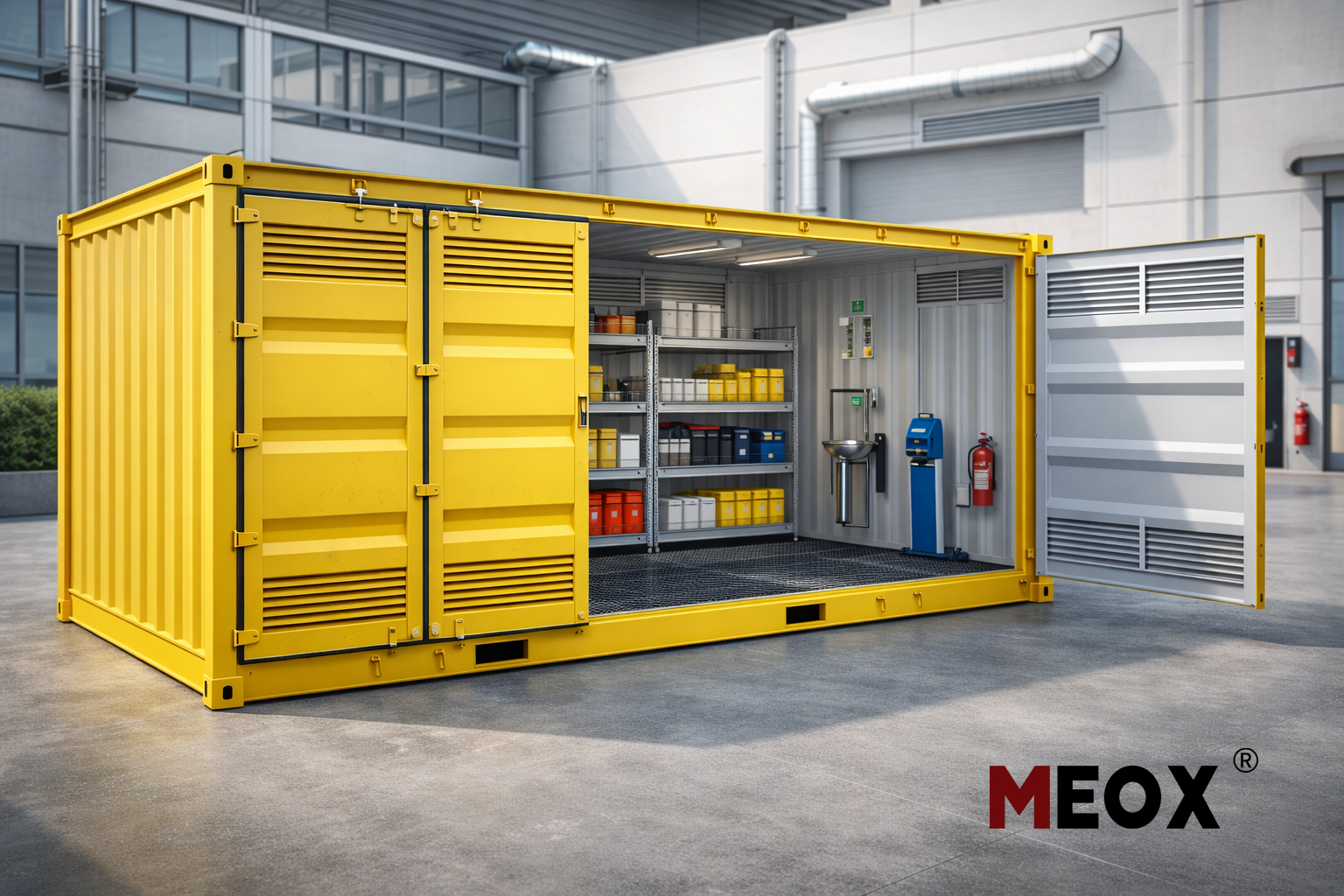 At MEOX, we specialize in transforming complex safety requirements into robust, turn-key hazmat storage containers.